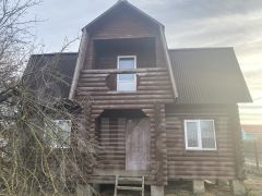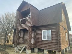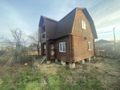 Дом сделан из оцилиндрованного бревна. В доме три комнаты, кухня, санузел. Из коммуникаций - скважина 30м. и свет 10кВт.
