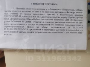 Кадастровый номер участка 23:07:0302003:*** указал продавец