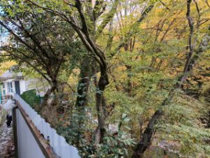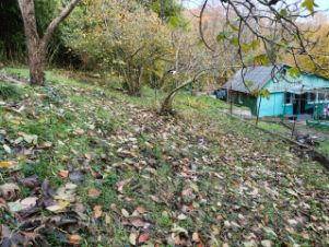 ВОКРУГ УЧАСТКА: спуск от парковки до дороги к морю чуть больше 15 метров, там речка .. от неё прохлада в самое жаркое время. Дубы выше 30 (!) метров, платаны и инжир окружают участок и засыпают склоны листьями размером с лист А4, под этим ковром - что не старая коряга, то ведро опят. И да - там же весной черемша.