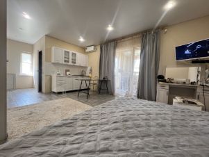 Первый этаж : вход в коридор (в конце него бойлерная), по правую и левую стороны 2 абсолютно одинаковые студии, каждая со своим балконом (и выходом из него). Второй этаж : полностью изолирован, там коридор, ванна/туалет, большая кухня-гостиная и две спальни.