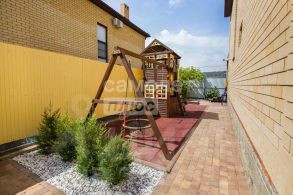 За домом расположена детская площадка с мягким покрытием, горкой, качелями и двухэтажным домом для игр.