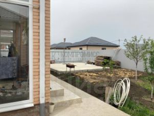 Дoм общей площадью 90 кв.м. с выходом из кухни-гостиной на зaстекленную тeрpасу 23 кв.м. с лестницей на чердак, пол нa чеpдакe зacтелен тёcом, большое помещение для хранения вещей. Территория внутри двора и придомовая территория залиты бетоном под плитку. Придомовая территория большая на 2 авто-места, установлены широкие качели, газон с молодыми декоративными деревьями и плодоносящий молодой сад, во дворе качели. На участке имеется навес-пристройка для автомобиля, под навесом оборудована смотровая яма, переходящая в погреб размером 2*2.