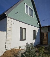 Дом с большой террасой, с видом на горы. Вокруг террасы вечнозеленые насаждения можжевельников, туй, елей, сосны. Лаванда, розмарин, мята, шалфей, кусты чайных роз, родендры, смородина, сакура, добавляют утренних ароматов. Это свой свежий чай на террасе каждый день. Этот дом для романтиков! Это та атмосфера в которой хочется находится, дышать, медитировать. В этом доме все продумано для удобной и комфортной жизни.