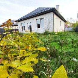Одноэтажный коттедж возведен на свайно-ростверковом фундаменте, материал стен — газоблок, наружные — лицевой кирпич, кровля — металлочерепица, металлопластиковые окна.