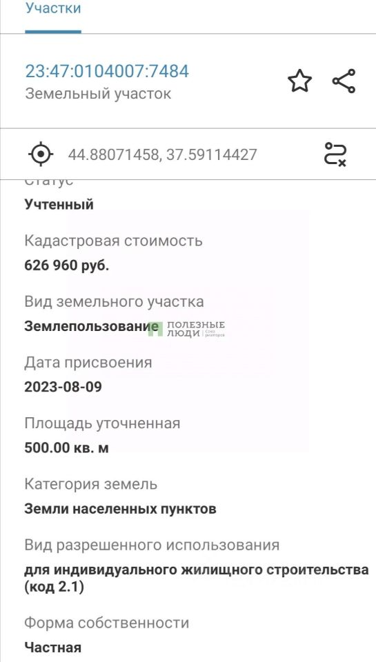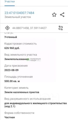 Кадастровый номер участка 23:47:0104007:*** указал продавец