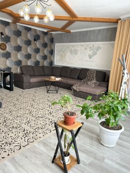 Продам дом 172кв.м и гостевой домик 40кв.м с современным ремонтом на земельном участке 7соток.Заходи и живи! Остается почти все! Дом расположен в 50 км от краевого центра г. Краснодар в зеленом, молодом, стремительно развивающемся районе города ( 2 Пятерочки, ВБ, Озон, магнит, овощной рынок, фермерские лавки, аптека, несколько продуктовых магазинов, детский садик, спортивный комплекс, игровая и спортивная детская площадка; стоится Доброцен , храм, аптека и тд). В доме 3 спальни по 16кв.м, гостиная 40кв.м, кухня 32кв.м , ванная комната и постирочная, раздельный санузел. Все помещения изолированы посредством широкого коридора со встроенным шкафом-гардеробной. В ванной и постирочной теплый пол и натяжной потолок, стены в кафеле. В остальных помещениях потолки гипсокартон. Стены в основном декоративный камень и штукатурка. Полы частично плитка, ламинат и сосна под лаком. Потолок дополнительно утеплен современной эко ватой. Двухконтурный газовый котел. Имеется система видеонаблюдения. Промышленный сплит в коридоре и сплит на кухне.