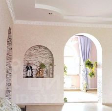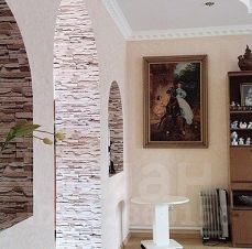 Материалы: дом построен из керамзитного блока, стены окрашены и отделаны шубой с алмазной крошкой