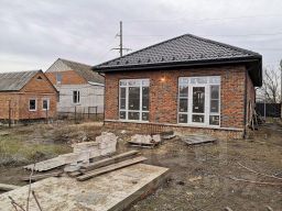 Станица Тбилисская, улица Московская. Жилой дом 2024 г. п. Общая площадь 89,9 кв. м., жилая 37. Современная удобная планировка! Просторная и светлая кухня/гостиная - 26,6 кв. м; три изолированные комнаты (14+12+10,4); ванная - 4,9; котельная - 5,5; коридор - 11, прихожая - 5,6 кв. м. Свет, заведены коммуникации. Газ рядом. ПРЕДЧИСТОВАЯ отделка. Земельный участок 10 сот.