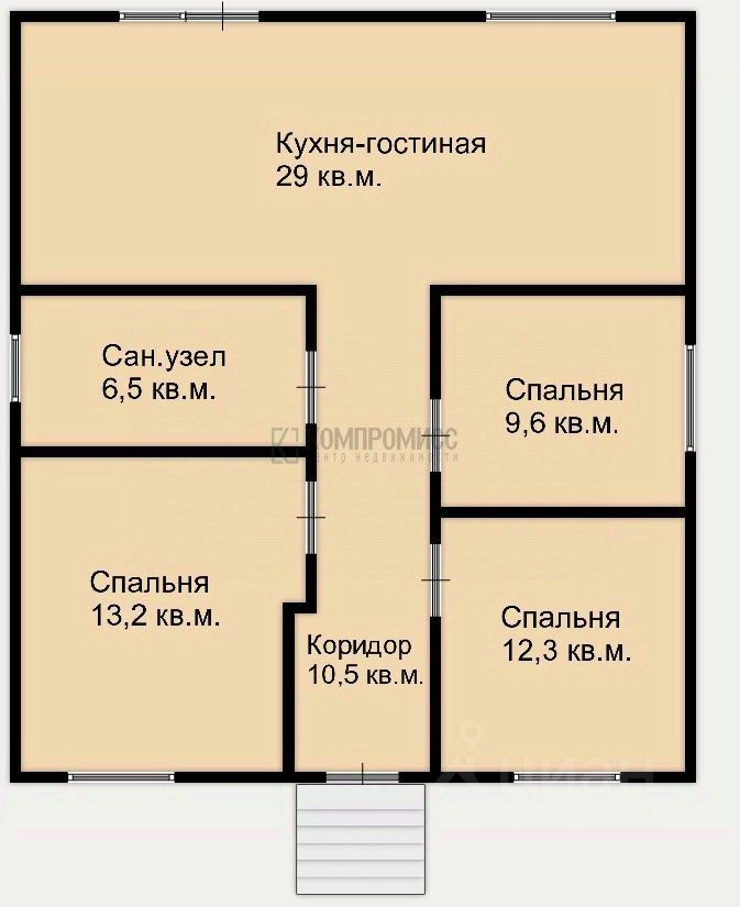 В доме 3 изолированные комнаты, кухня-гостиная, сан. узел, коридор.
