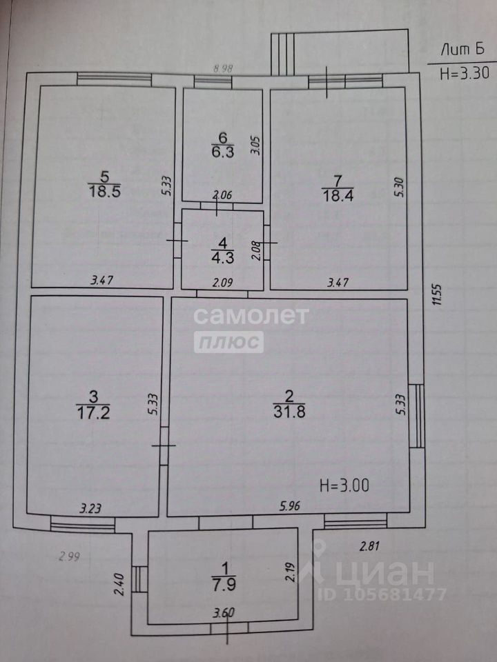 Жилые комнаты 18.5+18.4+17.2