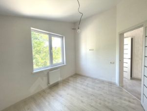 На 1 -м этаже дома большая, светлая кухня - гостиная с виражными окнами с видом на сад, спальня - кабинет, сан узел и тех. помещение.