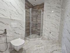 Ну, а внутри дома вас ждут две изолированные комнаты, совмещенный с/у-выложенный плиткой в светлых, спокойных тонах с инсталляцией душевой кабины, просторная кухня-гостинная с выходом на оборудованную Вами мангальную зону или террасу. Если вы заметили в схеме плана дома - три комнаты, но мы приняли неординарное решение и сделали две спальни и просторную кухню - гостинную. При желании или по необходимости Вы сможете сделать дополнительную изолированную комнату (спальню) или столовую. Пол во всем доме покрыт кафелем под паркет, а полы - тёплые). Натяжные потолки создают ощущение простора, их высота составляет 3 метра. Вам останется только выбрать обои по своему вкусу и установить двери. Заносите новую мебель и вот..... прекрасный дом для дружной семьи.