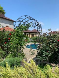 - на территории имеется гостевой домик с отдельным выходом на улицу ( полностью меблирован и благоустроен на 2 номера по 2 комнаты в каждом, площадь каждого номера 27 м2)