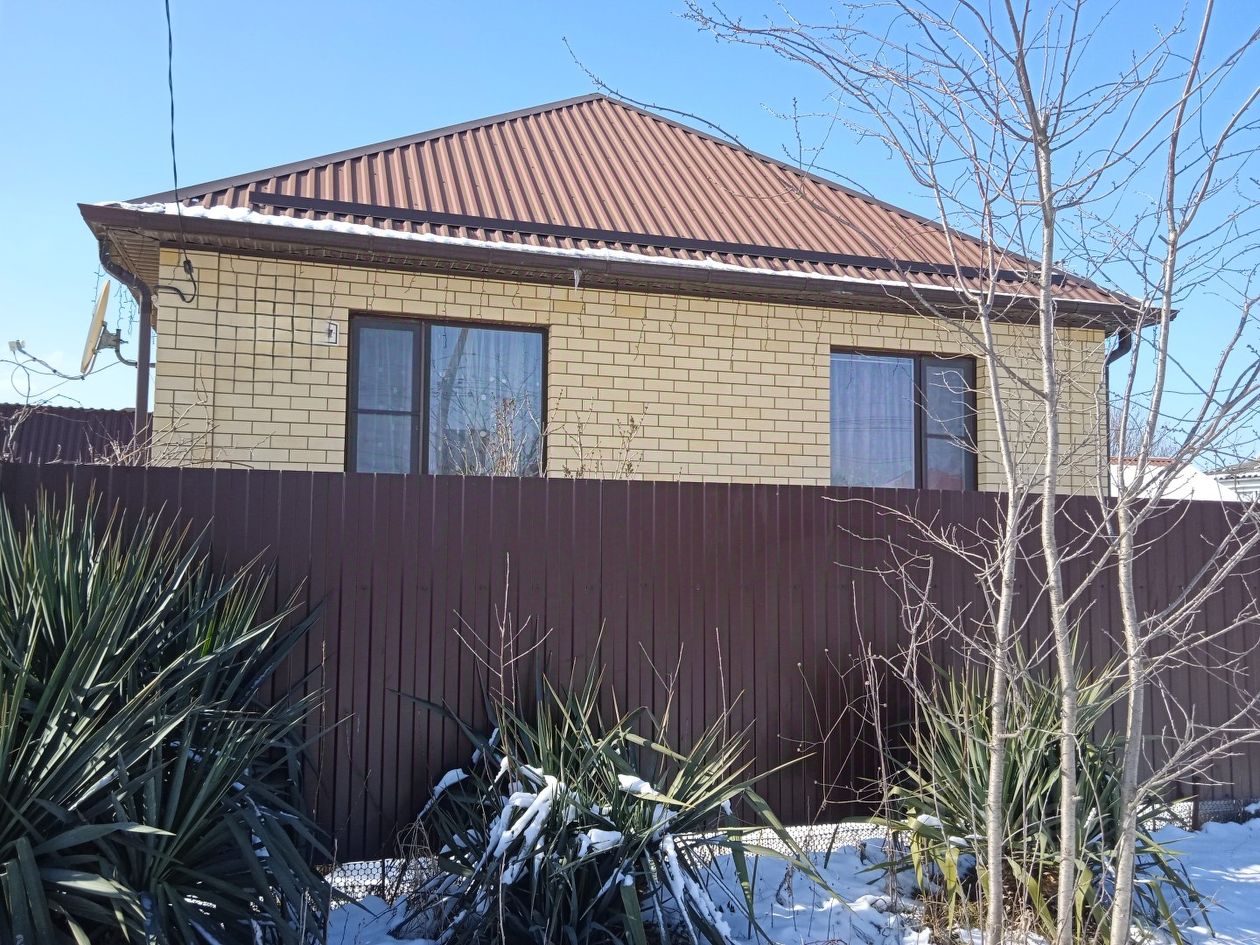 Maтepиал стен - блок, облицован кирпичом; кpышa - мeтaллoпрофиль; общая площaдь - 74 кв. м.
