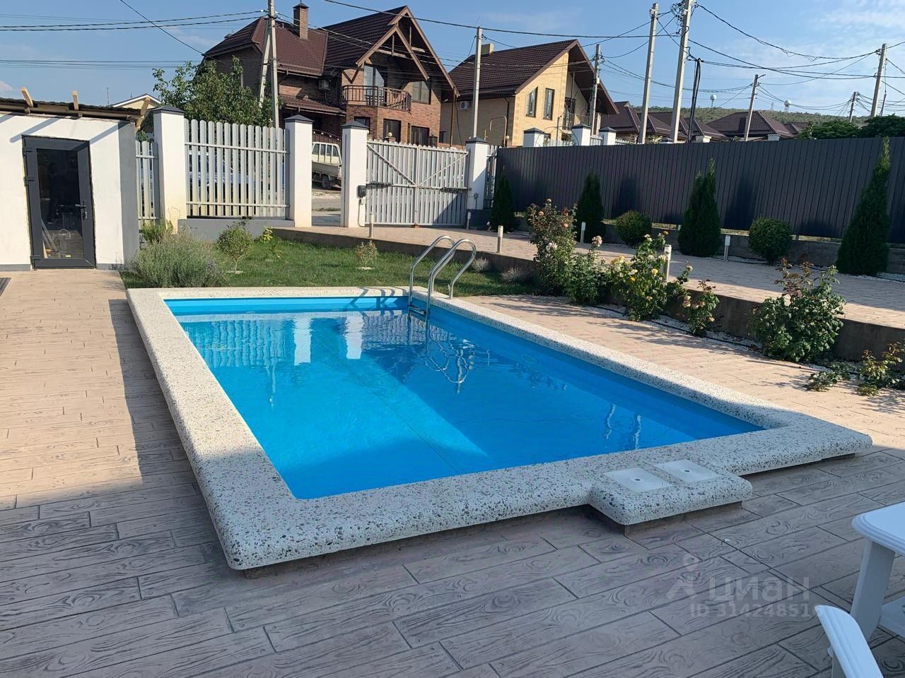 Есть вывод воды во дворе для полива. Забетонировано машино место.