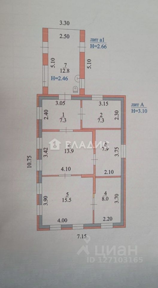 Строение шлакоблок, обложенный кирпичом, 1966 года постройки.
