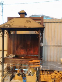 -отдельное здание бани (20 м²) с ровной крышей, на которой размещены беседка, бассейн и зона отдыха (загара)