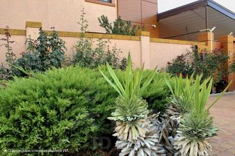 На участке и придомовой территории ландшафтный дизайн , а также плодовые деревья.