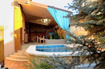 Во дворе есть место для двух автомобилей с навесом, со стороны террасы подогреваемый бассейн.