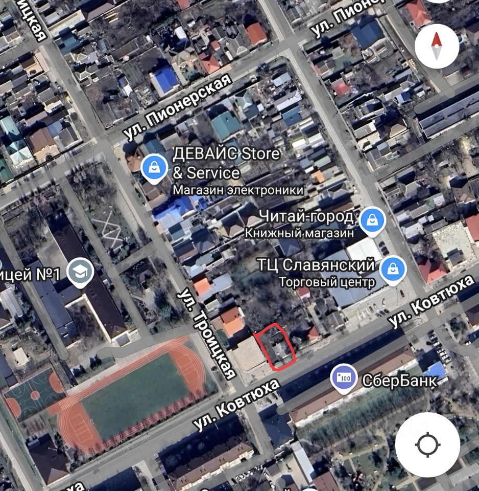 Участок находится на главной транспортной магистрали города. Улица Ковтюха практически полностью застроена коммерческими объектами. Рядом расположен большой магазин, а напротив — отделение Сбербанка. На этом же квартале находится торговый центр Славянский.