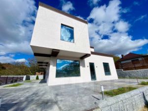 В доме 2 этажа. 4 комнат, одна на первом этаже и 3 спальни на втором. 2 санузла. 13 огромных панорамных окон с зеркальной тонировкой для максимальной приватности проживания. Естественно дом построен в полном соответствии с проектной документацией. Продуманная планировка и все инженерные решения электричества, водоснабжения, систем вентиляции. На участке выполнен авторский каскадный ландшафт. Произведено озеленение и система полива. Уже высаживаются кипарис, туя, фотиния, можжевельник, дейция и другие растения. Дизайнерское оформление ступеней. Дорожки на участке -печатный бетон. Красивое исполнение подпорных стенок. Светодиодная подсветка всего дома по периметру. Предусмотрен гараж для двух авто.