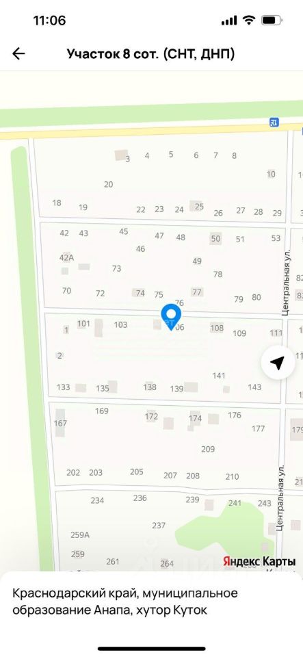Арт. 81434981 В продаже участок 8 соток , расположенный в х Куток , Анапского района ( СОНТ Колос). Участок ровный , полностью огорожен забором . Фасад 20 м. Залит фундамент для строительства жилого дома 10Х10 , свет подведен к участку.
