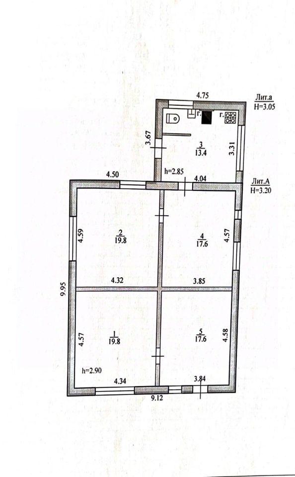 Две комнаты 19,8 и 17,6 кв.м в одной половине дома и две комнаты 19,8 и 17,6 кв.м в другой половине дома.