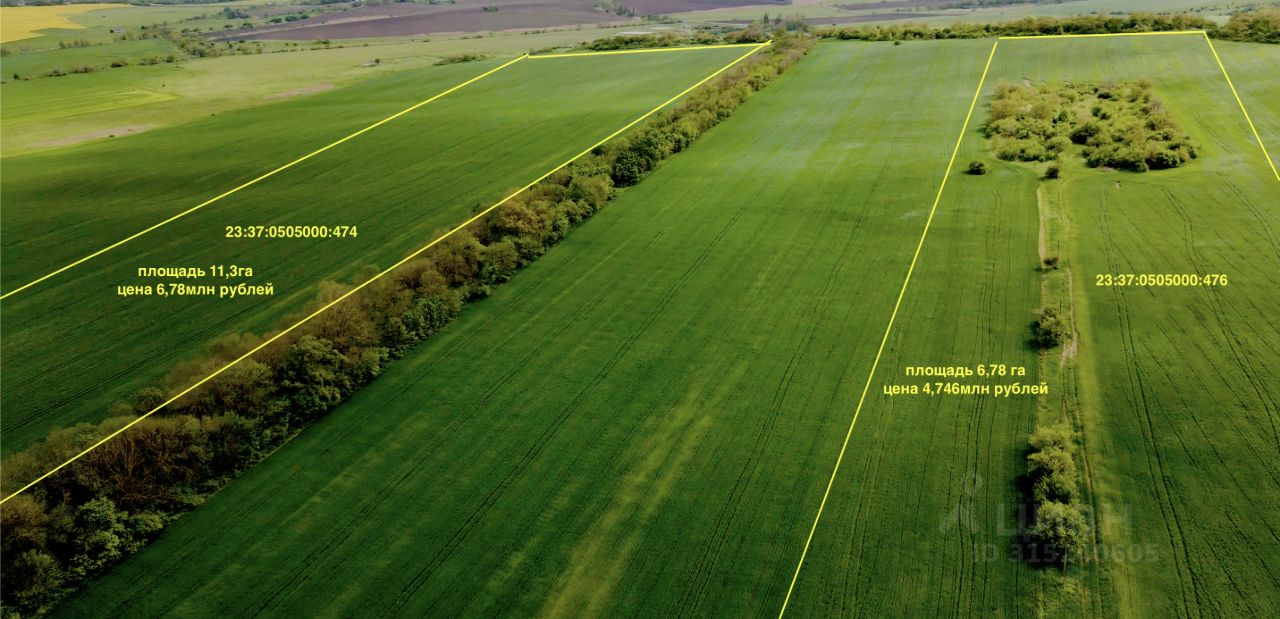 6,78 Га категории сельскохозяйственного назначения, для сельскохозяйственного производства. На соседних участках высажен виноградник, вишневый и черешневый сад. Шикарный вид на долину реки Кубань. Удобный подъезд со скоростной трассы А298. Хороший проезд до участка, дорога по границе. Участок расположен на пологом склоне, огражден с одной стороны сеткой, в дальней части от дороги удобно разместить дом и постройки, в ближней части к дороге сад. Кадастровый номер участка 23:37:0505000:476. Один собственник. Цена 700тр за гектар. Предлагаем рядом расположенный участок с кад номер 23:37:0505000:474 площадью 11,3 га по цене 600тр за гектар. Два участка разделены между собой лесополосой.