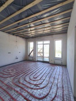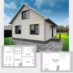 Планировка: В доме просторная кухня-гостиная с выходом на террасу, три спальни, совместный санузел. В доме будет сделана предчистовая отделка, разводка отопления, радиаторы, теплый пол по всему дому, установлен газовый котел.