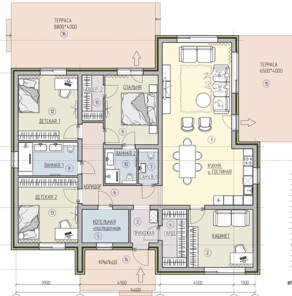 Дом общей площадью 145 кв.м с террасами — 220 кв.м.