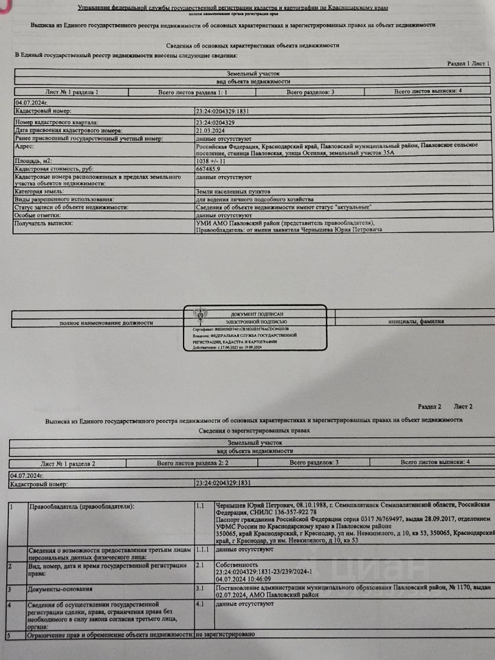 Кадастровый номер участка 23:24:0204329:*** указал продавец
