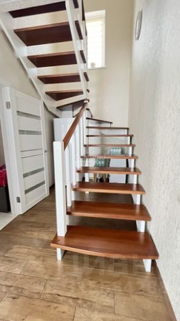 Лестница выполнена из древесины бука, сделан ремонт в спокойных и теплых тонах.
