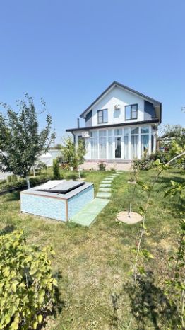 Участок ровный, посажен сад, который уже плодоносит, инжир, виноград, груша, яблоня, клубника и т.д., газон, красивый розарий.