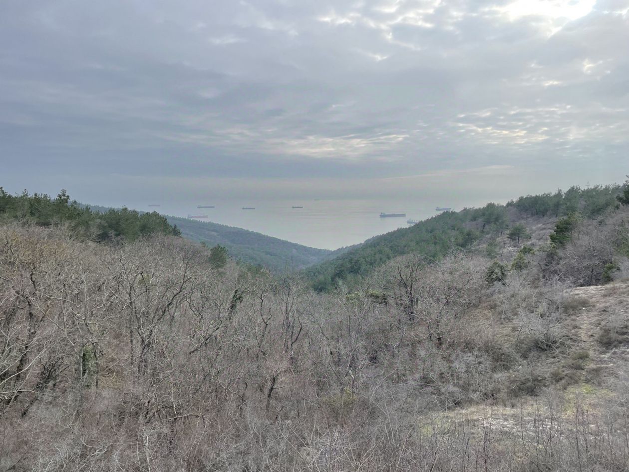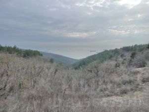 С участка открывается потрясающий вид на море, вокруг участка красивые горы.