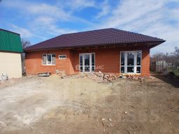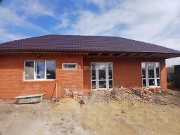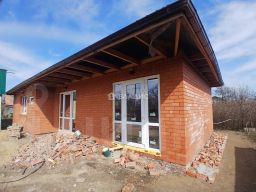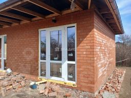 Материал стен - кирпич. Общая площадь - 76,9 м2. Коммуникации: вода - скважина, электроснабжение 15 кВт, канализация местная (септик). Три изолированные комнаты. Два санузла. Кухня - 13,8 м2. Входная группа и гостиная - панорамное остекление.