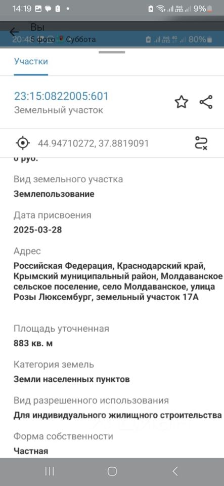 Кадастровый номер участка 23:15:0822005:*** указал продавец