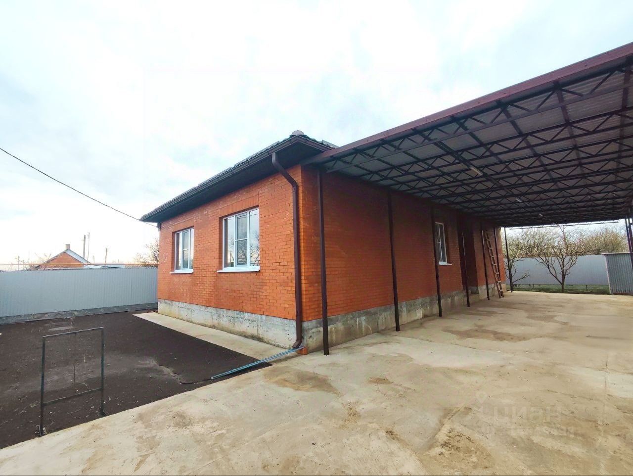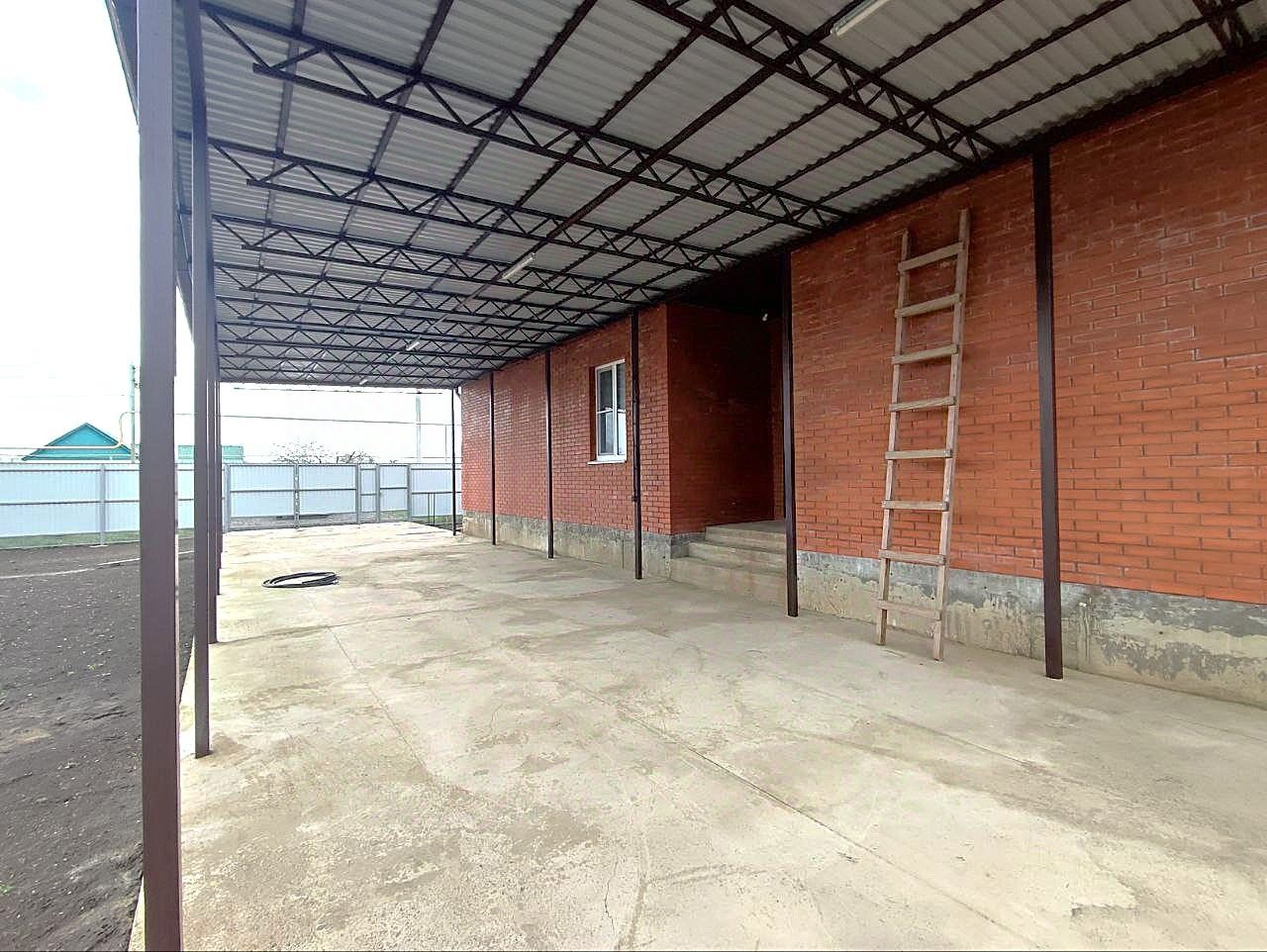 К дому пристроен большой навес для автомобиля.