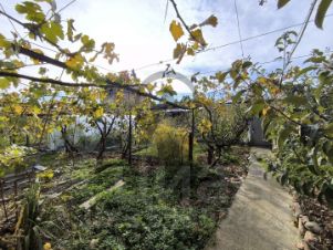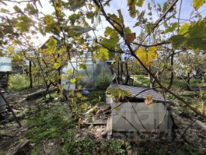 На участке организован сад, где растут плодовые деревья: яблони разных сортов, слива, вишня, груши, персики и виноградная лоза.