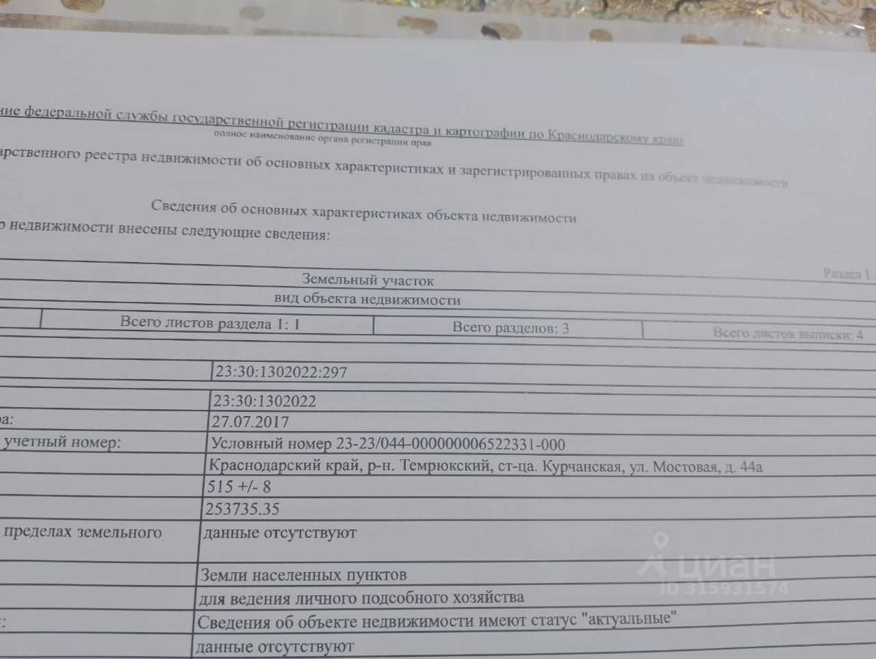 Кадастровый номер участка 23:30:1302022:*** указал продавец