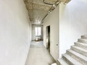 - 1 этаж: просторный коридор, кухня-гостиная (34 кв.м), совмещенный санузел (5,6 кв.м).