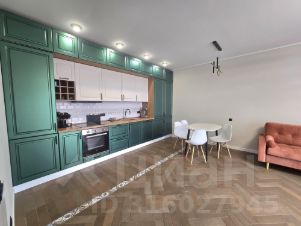 В кухне гостинной установлена встроенная кухня выполнена на заказ, посудомоечная машина, встроенный большой холодильник с морозильной камерой.