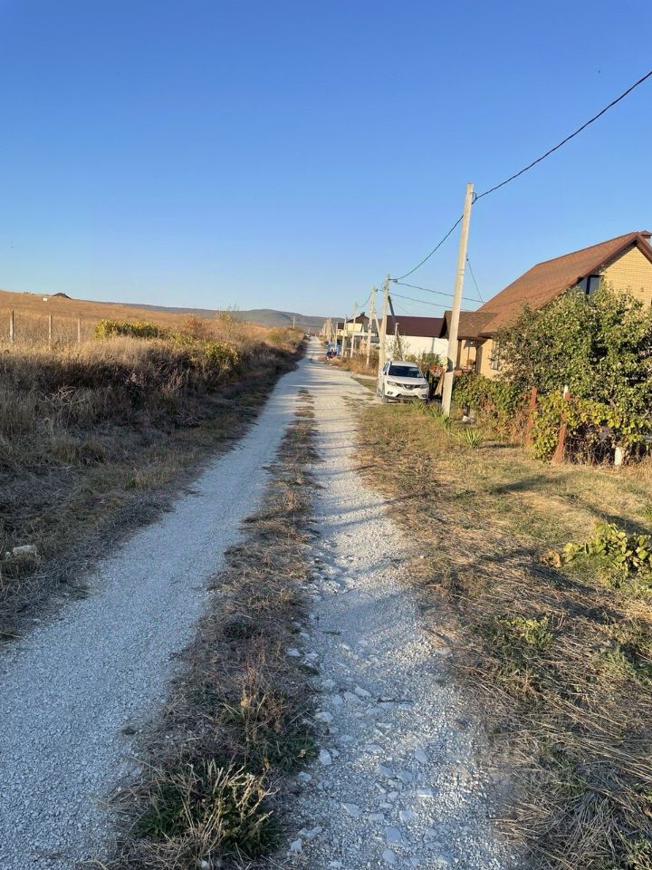 С участка открываются прекрасные виды на станицу и горы , с обеих сторон стоят жилые дома с постоянно живущими соседями. Вдоль участка отсыпана приятная гравийная дорога , до асфальта буквально метров 300. Вся инфраструктура станицы расположена в 2 минутах езды на автомобиле.