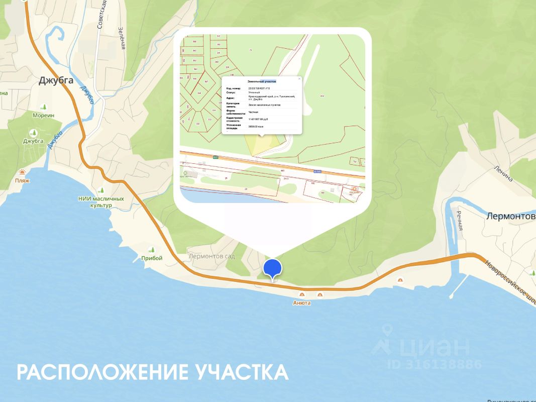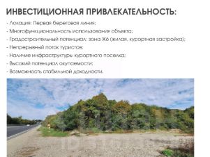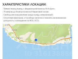 Участок расположен вдоль федеральной трассы М-4 Дон и всего в 70 метрах от пляжа Черного моря.