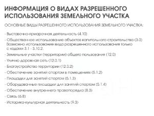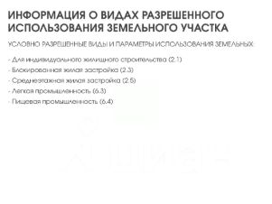 Разрешенное использование согласно ГПЗУ: Жилая застройка (ИЖС, таунхаусы), коммерция (гостиницы, рестораны, торговые центры, развлекательные комплексы), объекты дорожного сервиса, cпортивные и культурные объекты.