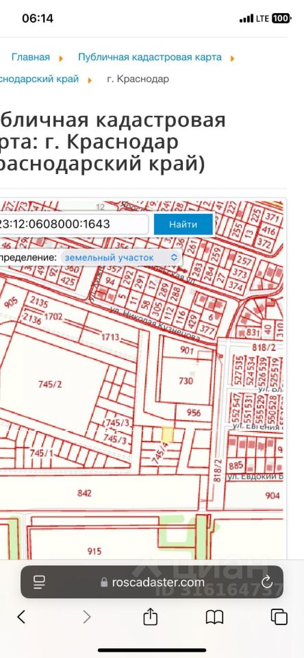 Продается земельный участок на 6 микрорайоне г. Кореновска для индивидуального жилищного строительства. Кадастровый номер 23:12:0608000:1643. Площадь 6,1 сотка, фасад 22 метра, прямоугольной ровной формы, имеется придомовая территория (6 метров). Возможно подведение воды (расстояние 39 метров от ближайшего колодца), также возможна газификация домовладения по заявке после возведения строения (бесплатно) или за плату без постройки. Учитывая наличие застройки массива планируется подведение электроснабжения. Участок дополнительных вложений не требует. В развитие массива предусмотрена социальная инфраструктура (школа, спортивные площадки). В шаговой доступности продуктовые магазины, остановка общественного транспорта, спортивные объекты(ледовый дворец, воздухоопорный комплекс, теннисные корты, детские площадки).
