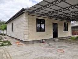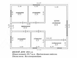 Станица Тбилисская, ул. Крепостная. ЦЕНТР. Жилой дом 2024 г. п., общей площадью 101,7 кв. м. и размером 9 м 12 м. Удобная современная планировка. Кухня/гостиная - 31,8 кв. м; три изолированные комнаты (13,2+12+11,8) кв. м., совмещённый санузел 8,8; котельная - 6,9; прихожая/коридор -11,2. Заведены все коммуникации. Тёплые полы, ПРЕДЧИСТОВАЯ отделка. Земельный участок 420 кв. м., под ЛПХ. Участок находится на углу на пересечении двух улиц, что очень удобно (подъехать можно с любой стороны). ФАСАДЫ: по Кривой 28 м; по Крепостной 15 м.