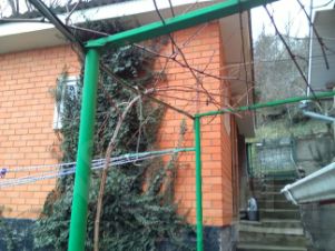 В нижнем саду сделаны подпорные стены и лестницы. Верхний использовали частично как огород. На участке несколько кустов винограда. Получается очень вкусное вино.