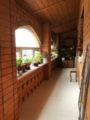 На 1 этаже холл, обеденный зал, кухня, ванная, туалет, бойлерная. На 2-ом этаже 2 спальни, гостиная. Есть небольшая гардеробная. Большой балкон-оранжерея.