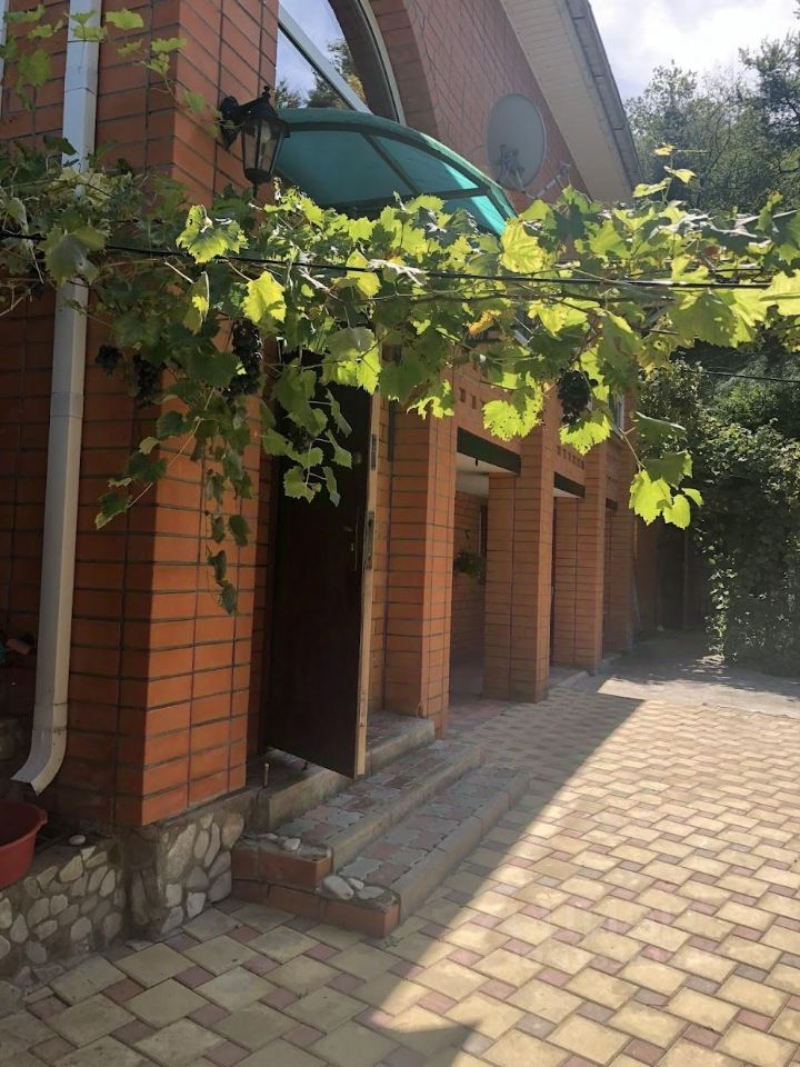 Уютный дворик перед домом с беседкой. Тенистные виноградные перголы.