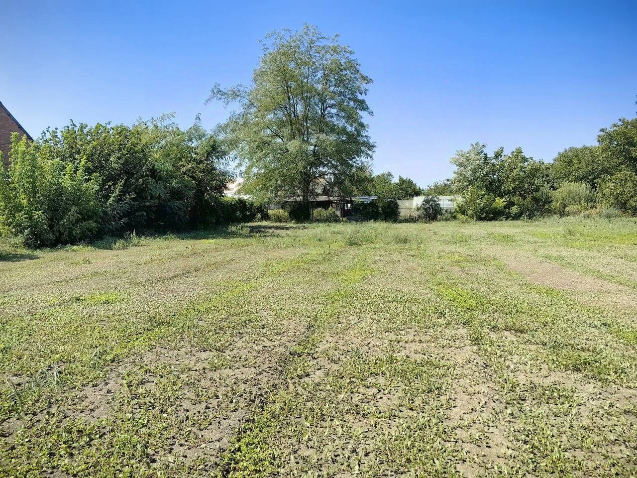 Коммуникации: свет проведен, газ и вода по меже. Фасад 17 метров. На участке старый фундамент.